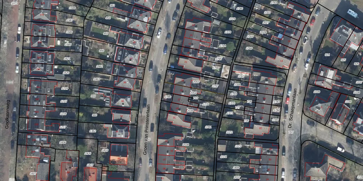 Het perceel waarop Groen van Prinstererlaan 25 staat heeft een oppervlakte van 177 m². Dit is een middelgroot perceel. De perceeloppervlakte wordt geregistreerd door het Kadaster. Gedetailleerde informatie over de maten van dit perceel kunt u vinden in het rapport Kadastrale kaart met maatvoering van Groen van Prinstererlaan 25.