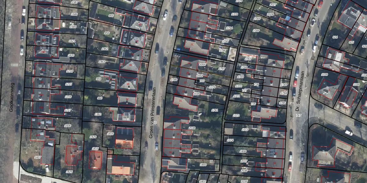 Gebruik de zoekbalk of klik op een perceel voor informatie over de adressen binnen dit perceel.