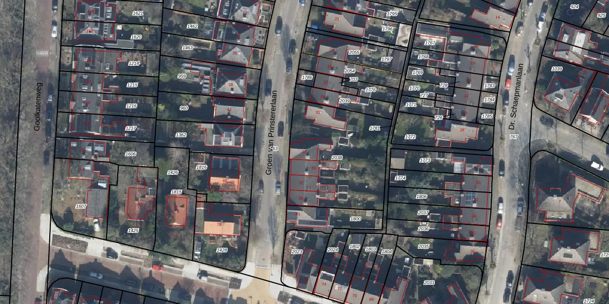 Het perceel waarop Groen van Prinstererlaan 33 staat heeft een oppervlakte van 1033 m². Dit is een zeer groot perceel. De perceeloppervlakte wordt geregistreerd door het Kadaster. Gedetailleerde informatie over de maten van dit perceel kunt u vinden in het rapport Kadastrale kaart met maatvoering van Groen van Prinstererlaan 33.