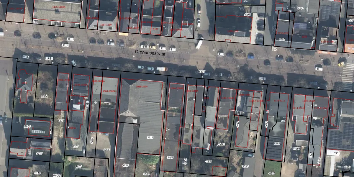Het perceel waarop Gronausestraat 1096 staat heeft een oppervlakte van 660 m². Dit is een groot perceel. De perceeloppervlakte wordt geregistreerd door het Kadaster. Gedetailleerde informatie over de maten van dit perceel kunt u vinden in het rapport Kadastrale kaart met maatvoering van Gronausestraat 1096.