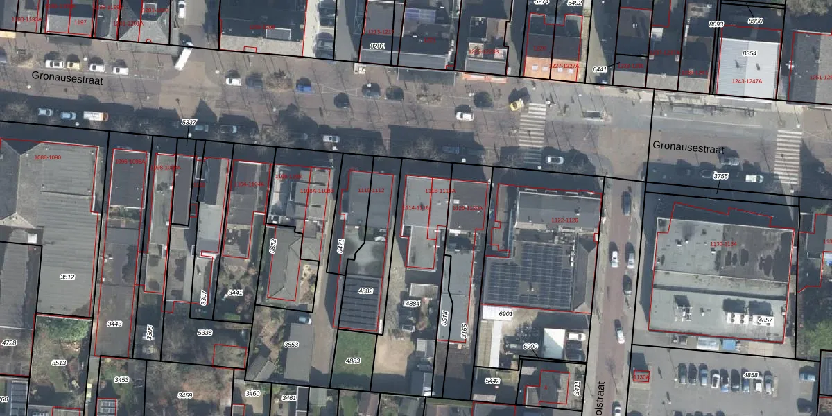 Gronausestraat 1116 is gelegen op kadastraal perceel LNK00F4884. Deze kadastrale aanduiding is uniek en wordt gebruikt door het Kadaster om eigendomsrechten en andere zakelijke rechten vast te leggen. Het perceel maakt onderdeel uit van de kadastrale gemeente Lonneker.