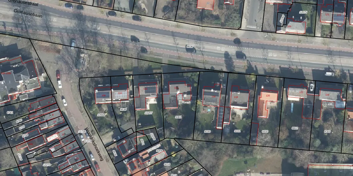 Gronausestraat 114 is gelegen op kadastraal perceel LNK00O9361. Deze kadastrale aanduiding is uniek en wordt gebruikt door het Kadaster om eigendomsrechten en andere zakelijke rechten vast te leggen. Het perceel maakt onderdeel uit van de kadastrale gemeente Lonneker.