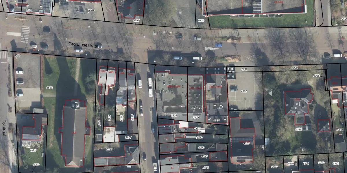 Gronausestraat 1210 is gelegen op kadastraal perceel LNK00F3625. Deze kadastrale aanduiding is uniek en wordt gebruikt door het Kadaster om eigendomsrechten en andere zakelijke rechten vast te leggen. Het perceel maakt onderdeel uit van de kadastrale gemeente Lonneker.