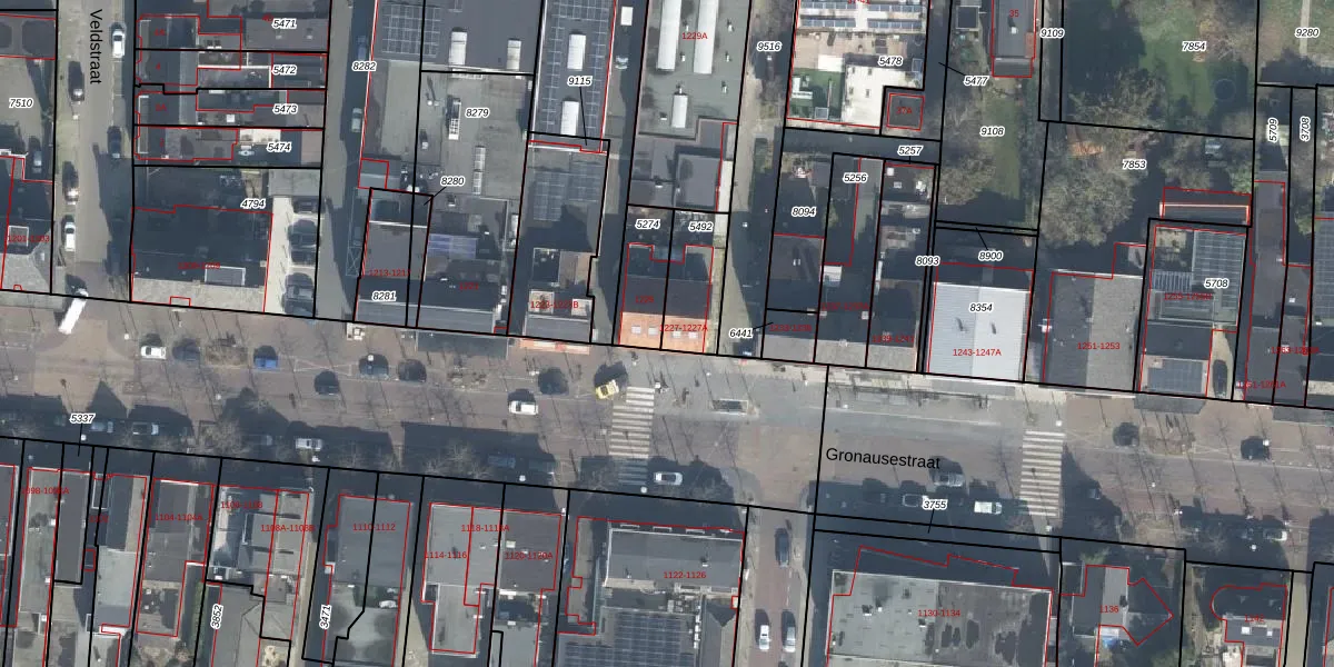 Het perceel waarop Gronausestraat 1227 staat heeft een oppervlakte van 175 m². Dit is een middelgroot perceel. De perceeloppervlakte wordt geregistreerd door het Kadaster. Gedetailleerde informatie over de maten van dit perceel kunt u vinden in het rapport Kadastrale kaart met maatvoering van Gronausestraat 1227.