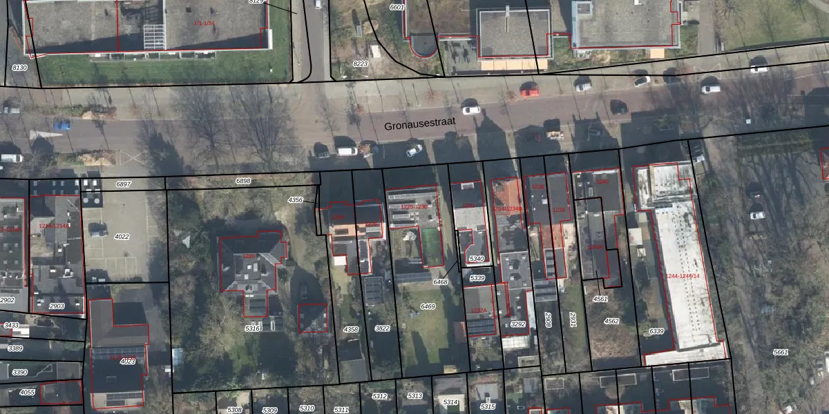 Gronausestraat 1230 is gelegen op kadastraal perceel LNK00F6469. Deze kadastrale aanduiding is uniek en wordt gebruikt door het Kadaster om eigendomsrechten en andere zakelijke rechten vast te leggen. Het perceel maakt onderdeel uit van de kadastrale gemeente Lonneker.