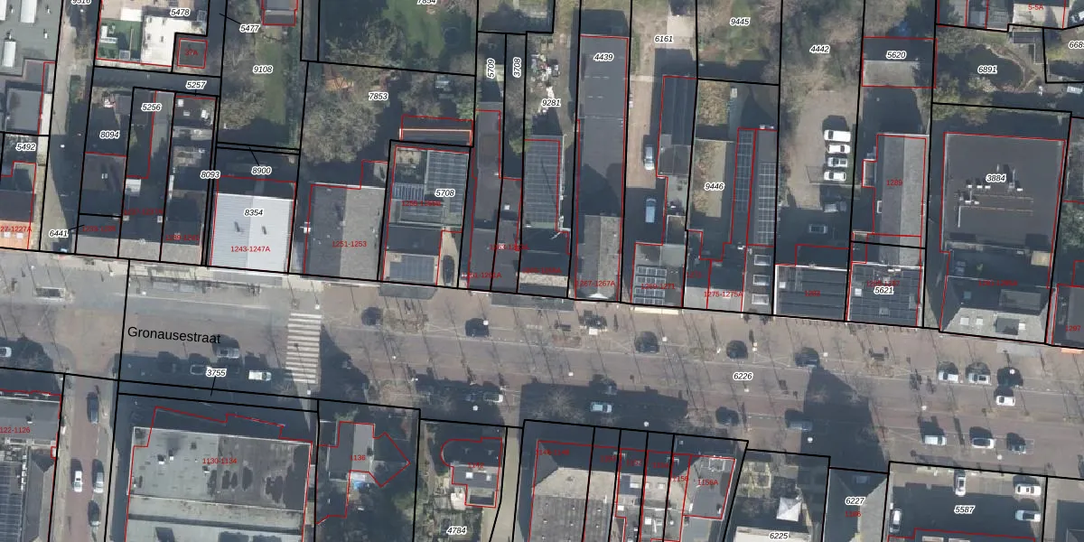 Gronausestraat 1265-A is gelegen op kadastraal perceel LNK00E9281. Deze kadastrale aanduiding is uniek en wordt gebruikt door het Kadaster om eigendomsrechten en andere zakelijke rechten vast te leggen. Het perceel maakt onderdeel uit van de kadastrale gemeente Lonneker.
