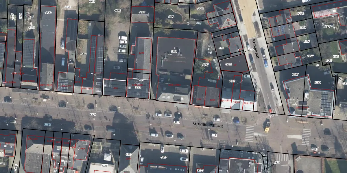 Gronausestraat 1295-A is gelegen op kadastraal perceel LNK00E3884. Deze kadastrale aanduiding is uniek en wordt gebruikt door het Kadaster om eigendomsrechten en andere zakelijke rechten vast te leggen. Het perceel maakt onderdeel uit van de kadastrale gemeente Lonneker.