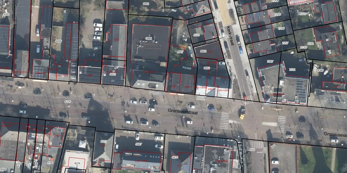 Gronausestraat 1297 is gelegen op kadastraal perceel LNK00E4947. Deze kadastrale aanduiding is uniek en wordt gebruikt door het Kadaster om eigendomsrechten en andere zakelijke rechten vast te leggen. Het perceel maakt onderdeel uit van de kadastrale gemeente Lonneker.