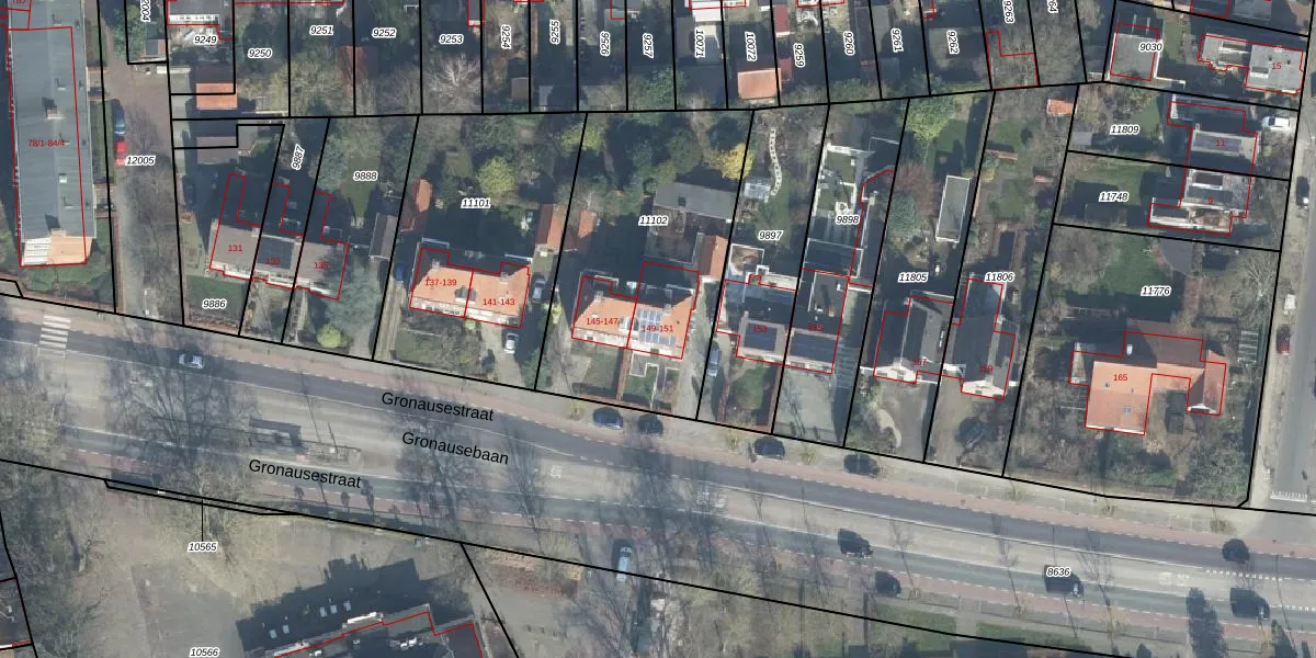 Het perceel waarop Gronausestraat 151 staat heeft een oppervlakte van 1147 m². Dit is een zeer groot perceel. De perceeloppervlakte wordt geregistreerd door het Kadaster. Gedetailleerde informatie over de maten van dit perceel kunt u vinden in het rapport Kadastrale kaart met maatvoering van Gronausestraat 151.