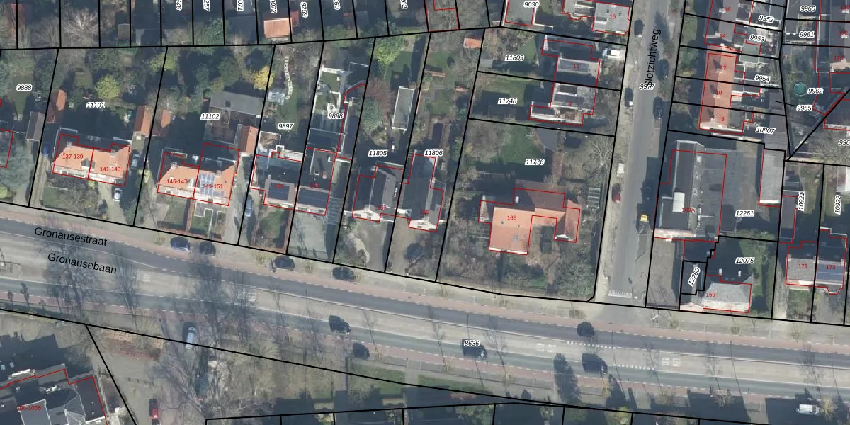 Gronausestraat 159 is gelegen op kadastraal perceel LNK00O11806. Deze kadastrale aanduiding is uniek en wordt gebruikt door het Kadaster om eigendomsrechten en andere zakelijke rechten vast te leggen. Het perceel maakt onderdeel uit van de kadastrale gemeente Lonneker.