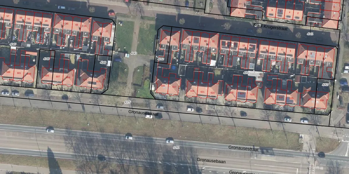 Het perceel waarop Gronausestraat 617 staat heeft een oppervlakte van 3909 m². Dit is een zeer groot perceel. De perceeloppervlakte wordt geregistreerd door het Kadaster. Gedetailleerde informatie over de maten van dit perceel kunt u vinden in het rapport Kadastrale kaart met maatvoering van Gronausestraat 617.