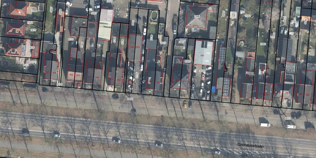 Gronausestraat 959 is gelegen op kadastraal perceel LNK00E7613. Deze kadastrale aanduiding is uniek en wordt gebruikt door het Kadaster om eigendomsrechten en andere zakelijke rechten vast te leggen. Het perceel maakt onderdeel uit van de kadastrale gemeente Lonneker.