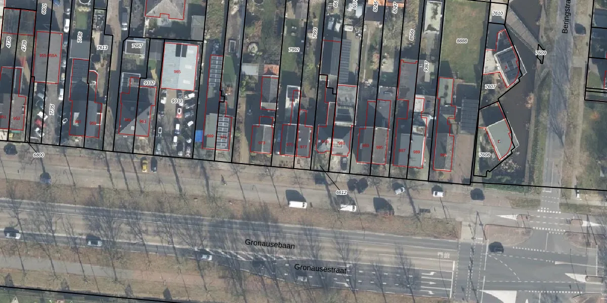 Gronausestraat 977 is gelegen op kadastraal perceel LNK00E7993. Deze kadastrale aanduiding is uniek en wordt gebruikt door het Kadaster om eigendomsrechten en andere zakelijke rechten vast te leggen. Het perceel maakt onderdeel uit van de kadastrale gemeente Lonneker.