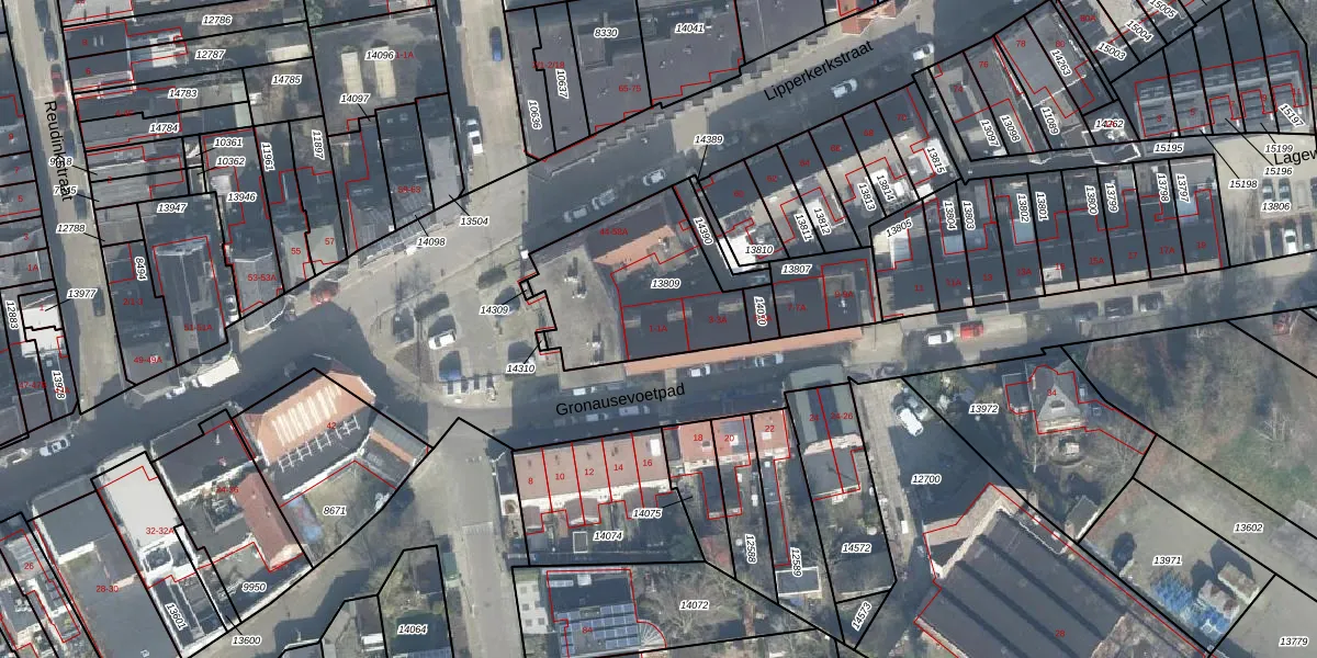 Het perceel waarop Gronausevoetpad 1-A staat heeft een oppervlakte van 593 m². Dit is een groot perceel. De perceeloppervlakte wordt geregistreerd door het Kadaster. Gedetailleerde informatie over de maten van dit perceel kunt u vinden in het rapport Kadastrale kaart met maatvoering van Gronausevoetpad 1-A.