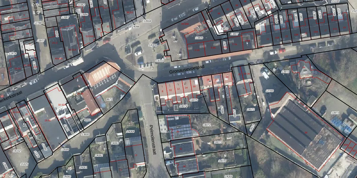 Gronausevoetpad 12 is gelegen op kadastraal perceel ESD00D14074. Deze kadastrale aanduiding is uniek en wordt gebruikt door het Kadaster om eigendomsrechten en andere zakelijke rechten vast te leggen. Het perceel maakt onderdeel uit van de kadastrale gemeente Enschede.