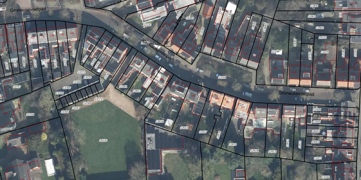 Gronausevoetpad 150 is gelegen op kadastraal perceel ESD00D12616. Deze kadastrale aanduiding is uniek en wordt gebruikt door het Kadaster om eigendomsrechten en andere zakelijke rechten vast te leggen. Het perceel maakt onderdeel uit van de kadastrale gemeente Enschede.