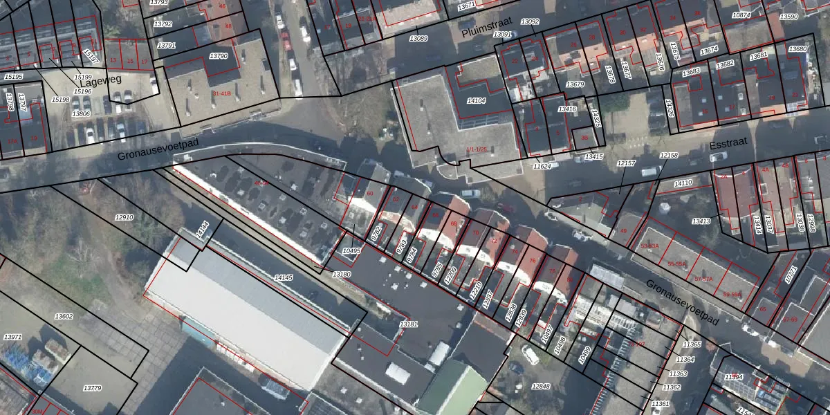 Gebruik de zoekbalk of klik op een perceel voor informatie over de adressen binnen dit perceel.