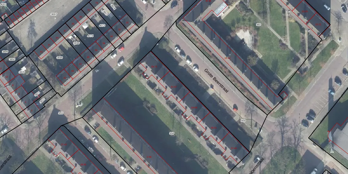 Het perceel waarop Grote Beerstraat 63 staat heeft een oppervlakte van 4755 m². Dit is een zeer groot perceel. De perceeloppervlakte wordt geregistreerd door het Kadaster. Gedetailleerde informatie over de maten van dit perceel kunt u vinden in het rapport Kadastrale kaart met maatvoering van Grote Beerstraat 63.