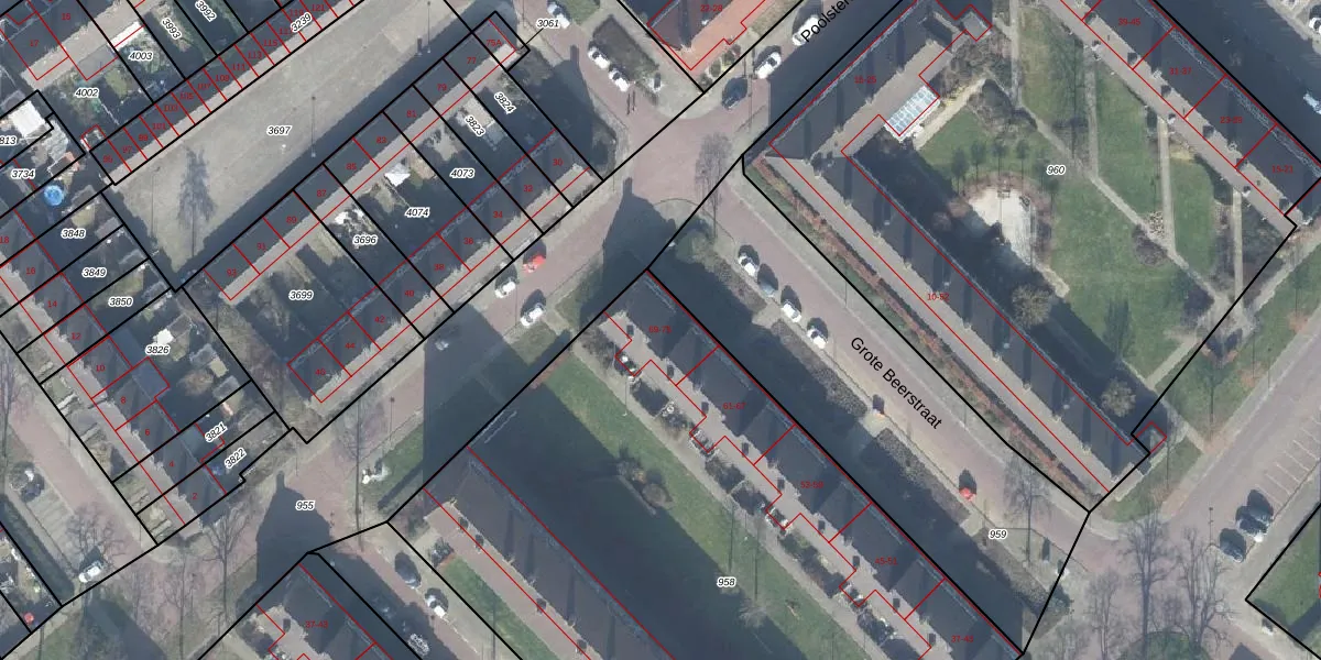 Het perceel waarop Grote Beerstraat 71 staat heeft een oppervlakte van 4755 m². Dit is een zeer groot perceel. De perceeloppervlakte wordt geregistreerd door het Kadaster. Gedetailleerde informatie over de maten van dit perceel kunt u vinden in het rapport Kadastrale kaart met maatvoering van Grote Beerstraat 71.
