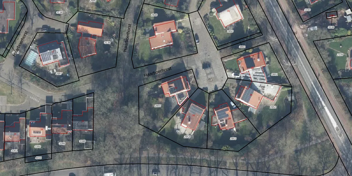 Het perceel waarop Haarboerhorst 30 staat heeft een oppervlakte van 731 m². Dit is een groot perceel. De perceeloppervlakte wordt geregistreerd door het Kadaster. Gedetailleerde informatie over de maten van dit perceel kunt u vinden in het rapport Kadastrale kaart met maatvoering van Haarboerhorst 30.