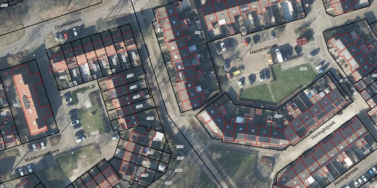 Het perceel waarop Hanninkhoek 104 staat heeft een oppervlakte van 2765 m². Dit is een zeer groot perceel. De perceeloppervlakte wordt geregistreerd door het Kadaster. Gedetailleerde informatie over de maten van dit perceel kunt u vinden in het rapport Kadastrale kaart met maatvoering van Hanninkhoek 104.