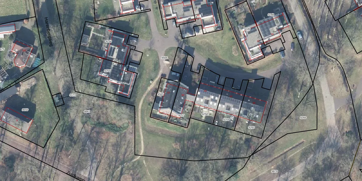 Het perceel waarop Harenbergweg 59 staat heeft een oppervlakte van 375 m². Dit is een groot perceel. De perceeloppervlakte wordt geregistreerd door het Kadaster. Gedetailleerde informatie over de maten van dit perceel kunt u vinden in het rapport Kadastrale kaart met maatvoering van Harenbergweg 59.