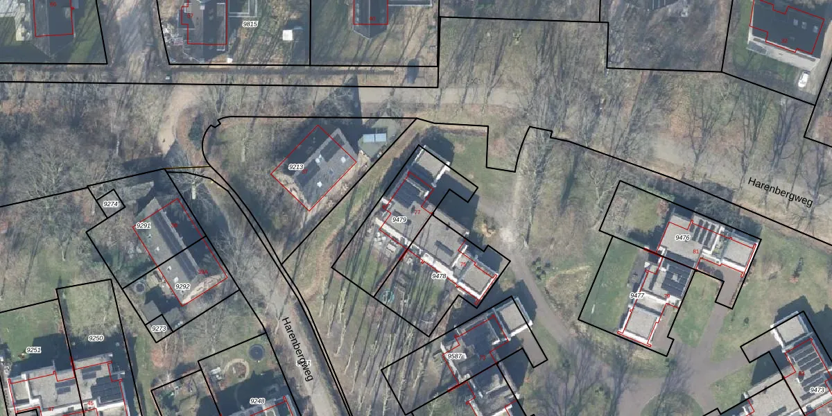 Harenbergweg 77 is gelegen op kadastraal perceel LNK00C9479. Deze kadastrale aanduiding is uniek en wordt gebruikt door het Kadaster om eigendomsrechten en andere zakelijke rechten vast te leggen. Het perceel maakt onderdeel uit van de kadastrale gemeente Lonneker.