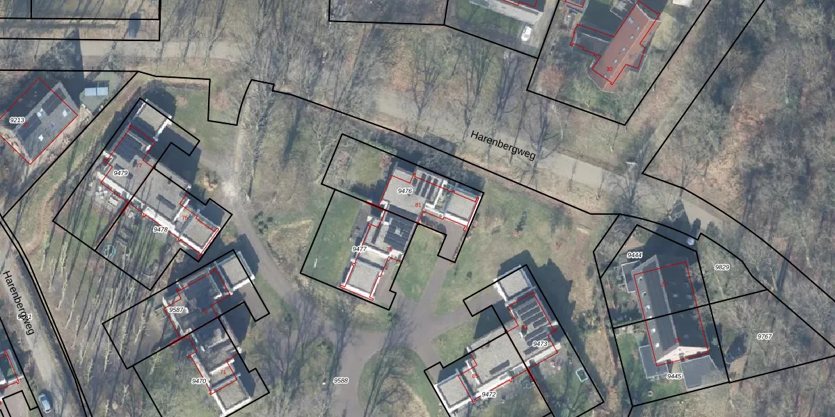 Het perceel waarop Harenbergweg 81 staat heeft een oppervlakte van 495 m². Dit is een groot perceel. De perceeloppervlakte wordt geregistreerd door het Kadaster. Gedetailleerde informatie over de maten van dit perceel kunt u vinden in het rapport Kadastrale kaart met maatvoering van Harenbergweg 81.