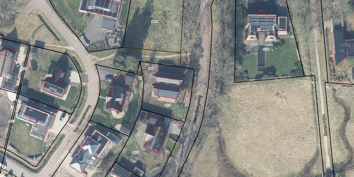 Het perceel waarop Harenbergweg 9 staat heeft een oppervlakte van 791 m². Dit is een groot perceel. De perceeloppervlakte wordt geregistreerd door het Kadaster. Gedetailleerde informatie over de maten van dit perceel kunt u vinden in het rapport Kadastrale kaart met maatvoering van Harenbergweg 9.