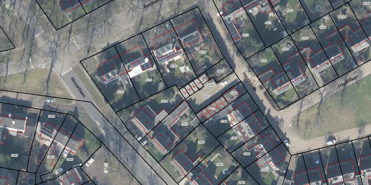 Het perceel waarop Haydnlaan 29-C staat heeft een oppervlakte van 19 m². Dit is een klein perceel. De perceeloppervlakte wordt geregistreerd door het Kadaster. Gedetailleerde informatie over de maten van dit perceel kunt u vinden in het rapport Kadastrale kaart met maatvoering van Haydnlaan 29-C.
