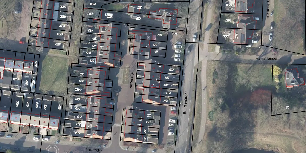 Gebruik de zoekbalk of klik op een perceel voor informatie over de adressen binnen dit perceel.