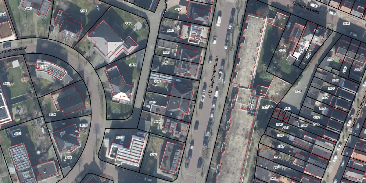 Gebruik de zoekbalk of klik op een perceel voor informatie over de adressen binnen dit perceel.