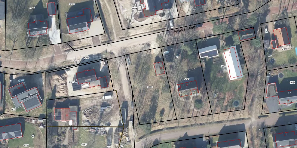 Het perceel waarop Heetveldweg 15 staat heeft een oppervlakte van 1225 m². Dit is een zeer groot perceel. De perceeloppervlakte wordt geregistreerd door het Kadaster. Gedetailleerde informatie over de maten van dit perceel kunt u vinden in het rapport Kadastrale kaart met maatvoering van Heetveldweg 15.
