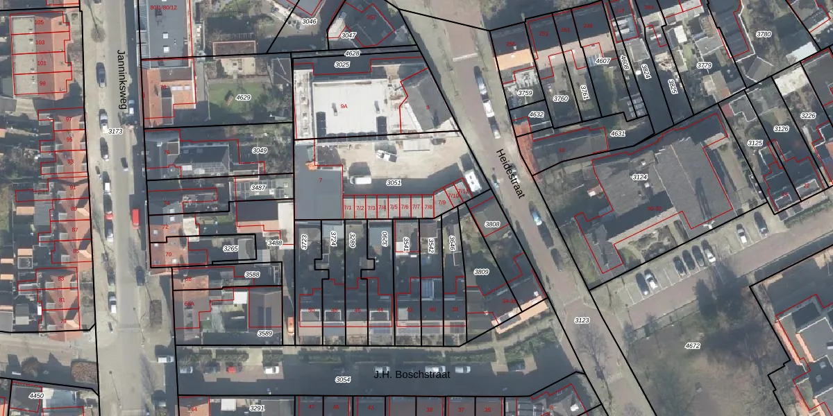 Heidestraat 7-7 is gelegen op kadastraal perceel ESD00G3051. Deze kadastrale aanduiding is uniek en wordt gebruikt door het Kadaster om eigendomsrechten en andere zakelijke rechten vast te leggen. Het perceel maakt onderdeel uit van de kadastrale gemeente Enschede.