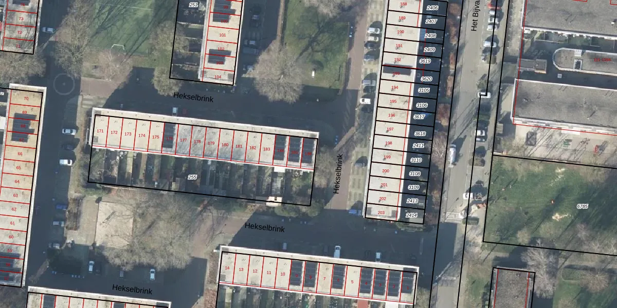 Het perceel waarop Hekselbrink 186 staat heeft een oppervlakte van 1597 m². Dit is een zeer groot perceel. De perceeloppervlakte wordt geregistreerd door het Kadaster. Gedetailleerde informatie over de maten van dit perceel kunt u vinden in het rapport Kadastrale kaart met maatvoering van Hekselbrink 186.