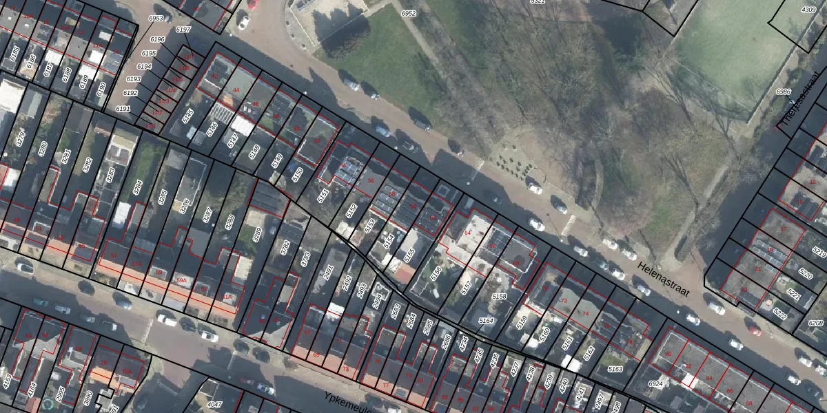 Het perceel waarop Helenastraat 60 staat heeft een oppervlakte van 150 m². Dit is een middelgroot perceel. De perceeloppervlakte wordt geregistreerd door het Kadaster. Gedetailleerde informatie over de maten van dit perceel kunt u vinden in het rapport Kadastrale kaart met maatvoering van Helenastraat 60.