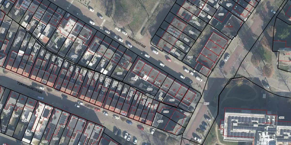 Het perceel waarop Helenastraat 82 staat heeft een oppervlakte van 484 m². Dit is een groot perceel. De perceeloppervlakte wordt geregistreerd door het Kadaster. Gedetailleerde informatie over de maten van dit perceel kunt u vinden in het rapport Kadastrale kaart met maatvoering van Helenastraat 82.