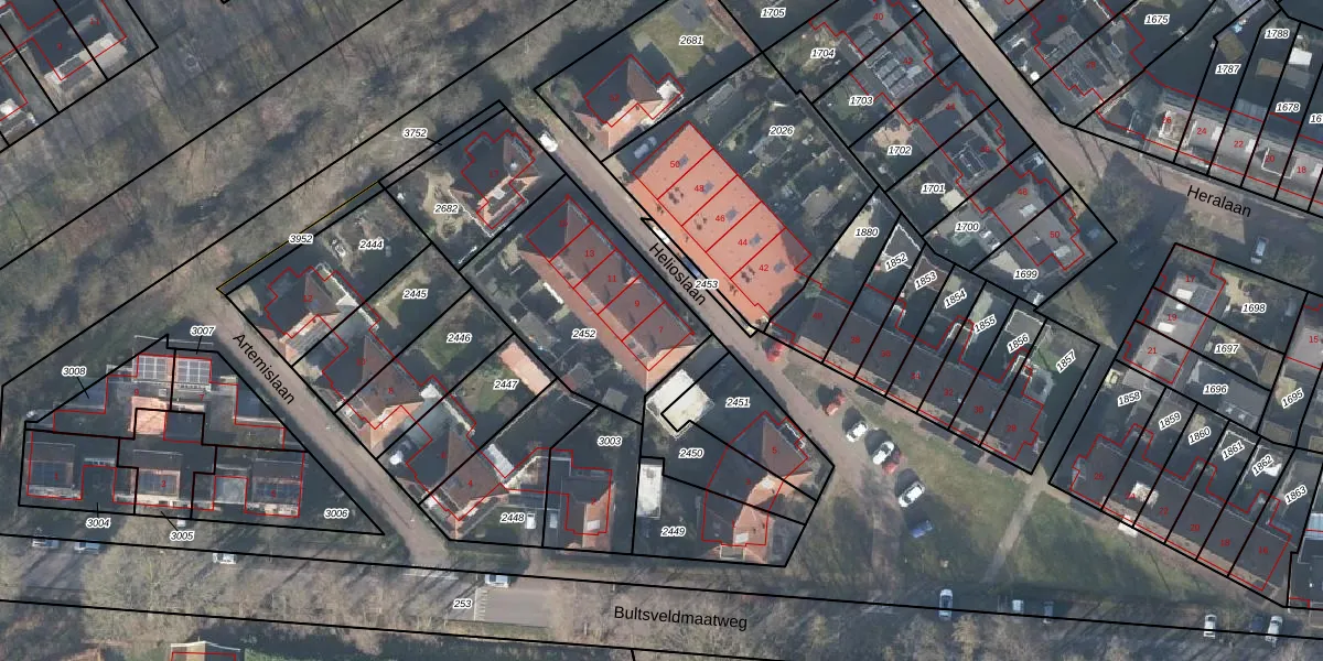Het perceel waarop Helioslaan 7 staat heeft een oppervlakte van 715 m². Dit is een groot perceel. De perceeloppervlakte wordt geregistreerd door het Kadaster. Gedetailleerde informatie over de maten van dit perceel kunt u vinden in het rapport Kadastrale kaart met maatvoering van Helioslaan 7.