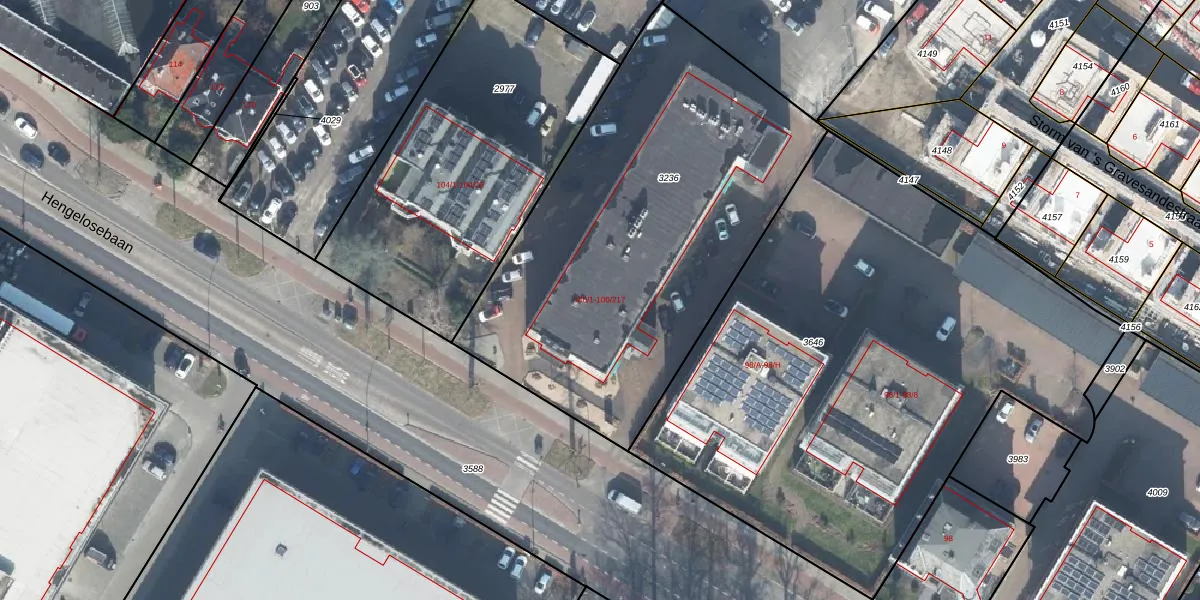 Het perceel waarop Hengelosestraat 100-5 staat heeft een oppervlakte van 2257 m². Dit is een zeer groot perceel. De perceeloppervlakte wordt geregistreerd door het Kadaster. Gedetailleerde informatie over de maten van dit perceel kunt u vinden in het rapport Kadastrale kaart met maatvoering van Hengelosestraat 100-5.