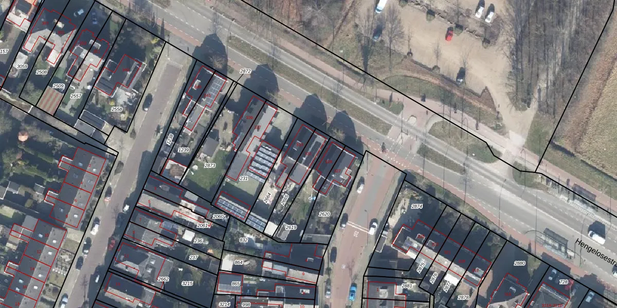 Gebruik de zoekbalk of klik op een perceel voor informatie over de adressen binnen dit perceel.