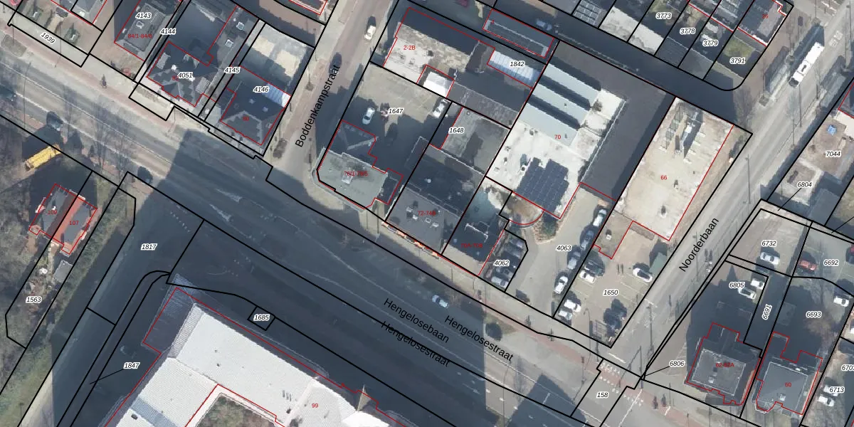 Het perceel waarop Hengelosestraat 72-1 staat heeft een oppervlakte van 496 m². Dit is een groot perceel. De perceeloppervlakte wordt geregistreerd door het Kadaster. Gedetailleerde informatie over de maten van dit perceel kunt u vinden in het rapport Kadastrale kaart met maatvoering van Hengelosestraat 72-1.