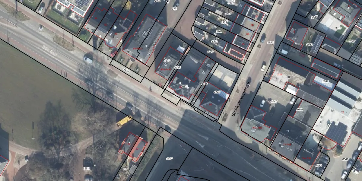 Gebruik de zoekbalk of klik op een perceel voor informatie over de adressen binnen dit perceel.