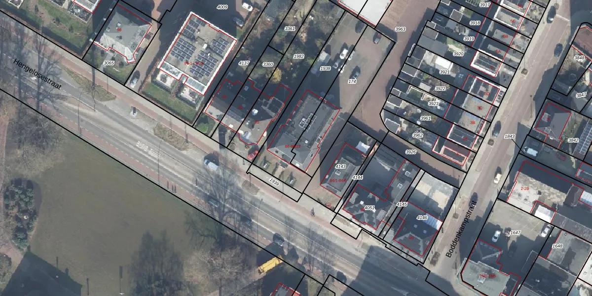 Het perceel waarop Hengelosestraat 86 staat heeft een oppervlakte van 585 m². Dit is een groot perceel. De perceeloppervlakte wordt geregistreerd door het Kadaster. Gedetailleerde informatie over de maten van dit perceel kunt u vinden in het rapport Kadastrale kaart met maatvoering van Hengelosestraat 86.