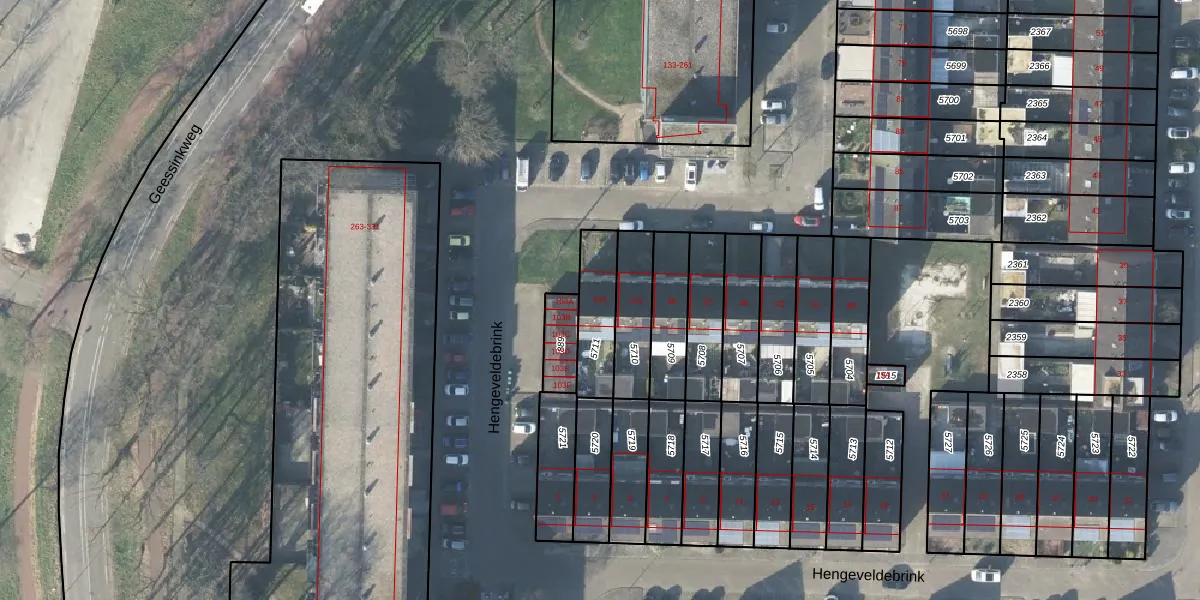 Gebruik de zoekbalk of klik op een perceel voor informatie over de adressen binnen dit perceel.