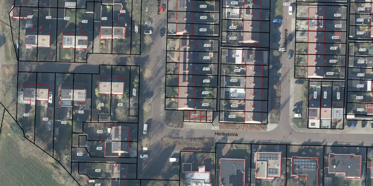Het perceel waarop Herikebrink 104 staat heeft een oppervlakte van 175 m². Dit is een middelgroot perceel. De perceeloppervlakte wordt geregistreerd door het Kadaster. Gedetailleerde informatie over de maten van dit perceel kunt u vinden in het rapport Kadastrale kaart met maatvoering van Herikebrink 104.