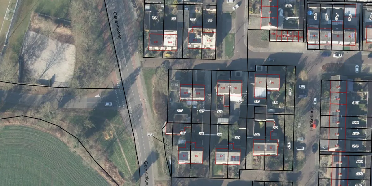 Het perceel waarop Herikebrink 105 staat heeft een oppervlakte van 376 m². Dit is een groot perceel. De perceeloppervlakte wordt geregistreerd door het Kadaster. Gedetailleerde informatie over de maten van dit perceel kunt u vinden in het rapport Kadastrale kaart met maatvoering van Herikebrink 105.