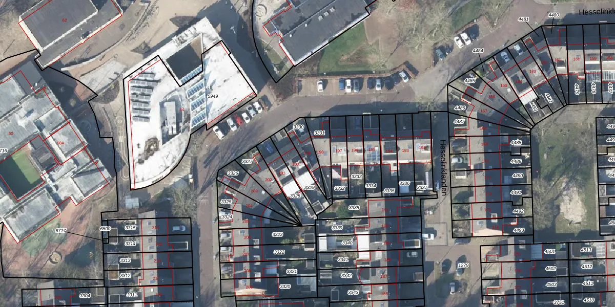 Hesselinklanden 199 is gelegen op kadastraal perceel LNK00Z3330. Deze kadastrale aanduiding is uniek en wordt gebruikt door het Kadaster om eigendomsrechten en andere zakelijke rechten vast te leggen. Het perceel maakt onderdeel uit van de kadastrale gemeente Lonneker.