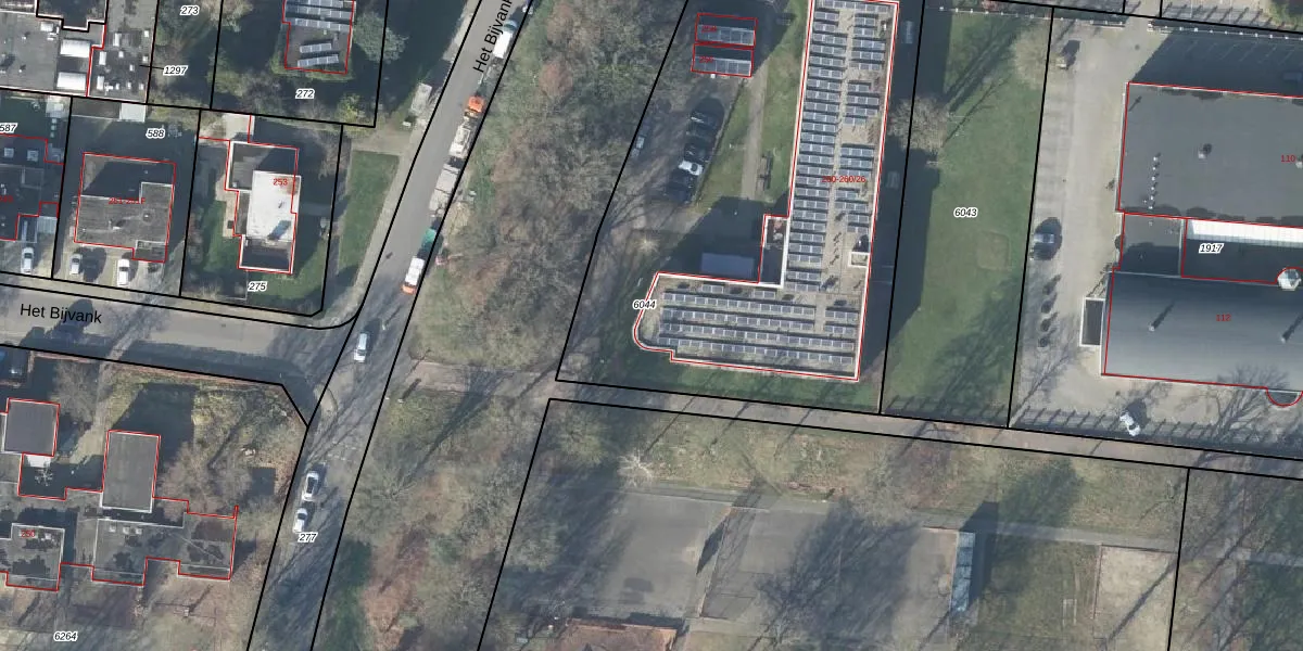 Het perceel waarop Het Bijvank 260-16 staat heeft een oppervlakte van 2815 m². Dit is een zeer groot perceel. De perceeloppervlakte wordt geregistreerd door het Kadaster. Gedetailleerde informatie over de maten van dit perceel kunt u vinden in het rapport Kadastrale kaart met maatvoering van Het Bijvank 260-16.