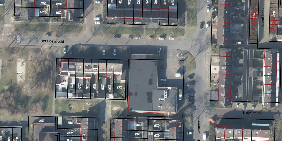 Het Oosterveld 10 is gelegen op kadastraal perceel LNK00Z750. Deze kadastrale aanduiding is uniek en wordt gebruikt door het Kadaster om eigendomsrechten en andere zakelijke rechten vast te leggen. Het perceel maakt onderdeel uit van de kadastrale gemeente Lonneker.