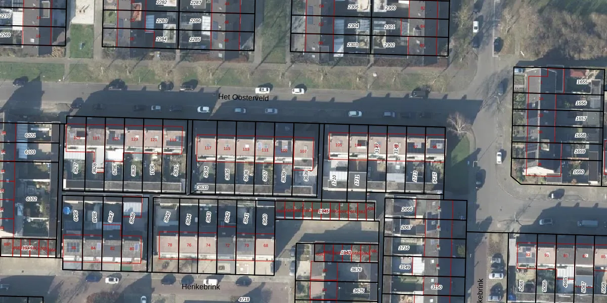Het Oosterveld 107 is gelegen op kadastraal perceel LNK00Z3639. Deze kadastrale aanduiding is uniek en wordt gebruikt door het Kadaster om eigendomsrechten en andere zakelijke rechten vast te leggen. Het perceel maakt onderdeel uit van de kadastrale gemeente Lonneker.